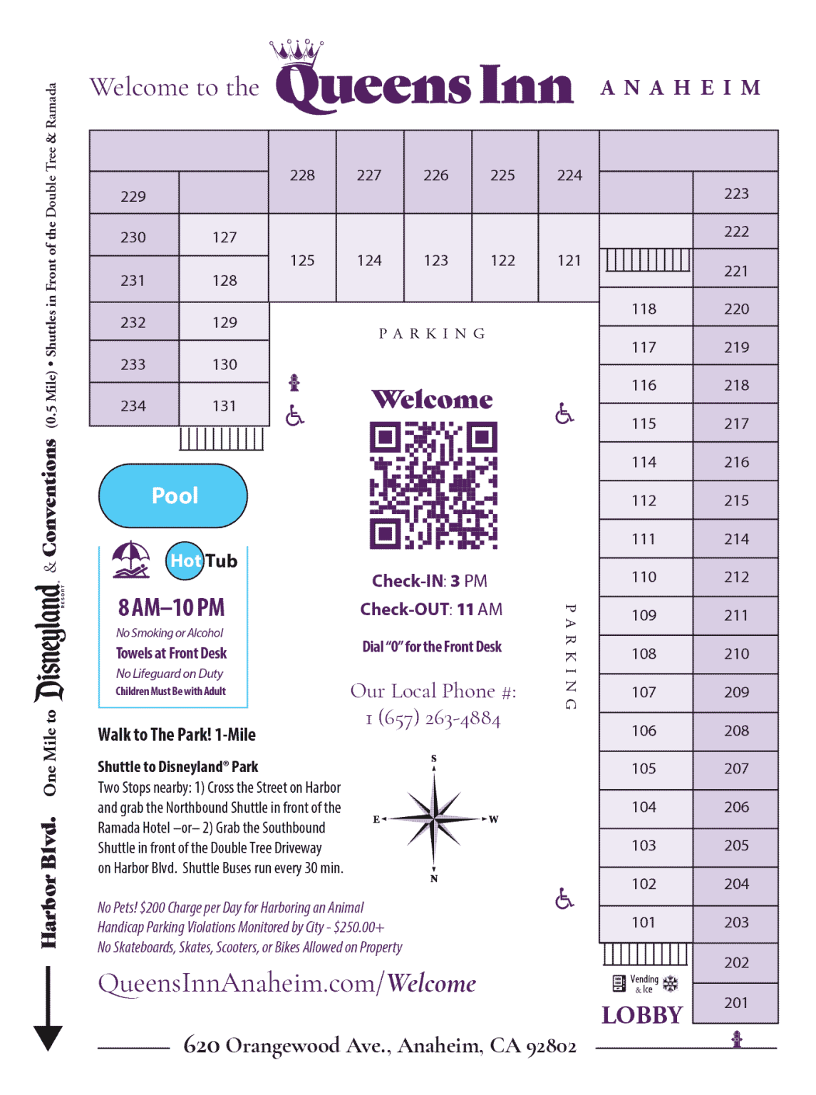 No Skateboards, Skates, Scooters, or Bikes Allowed on Property. Handicap Parking Violations Monitored by City – $250.00+ No Pets! $200 Charge per Day for Harboring an Animal Harbor Blvd.